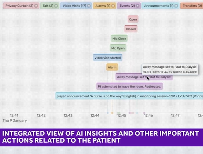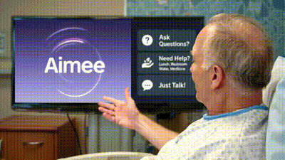 Consults can occur through EHR, mobile device and from anywhere. AI insights help provide never before available data on patient mobility, rest and recovery. aimee is the first virtual assistant that can see what is happening in the room and engage with the patient on your behalf - giving you the essential information you need to improve care.